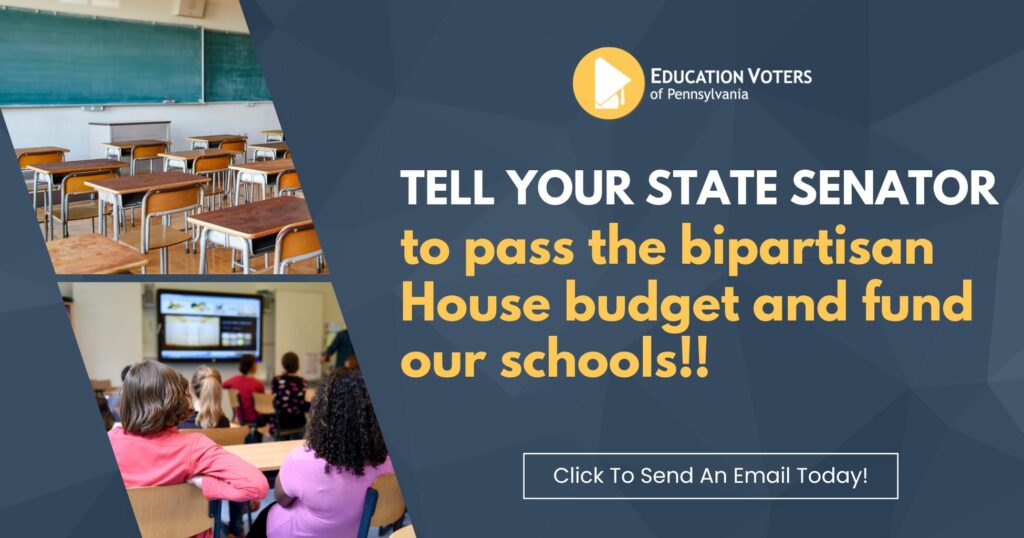 Please contact your senator today and urge them to immediately pass the bipartisan House budget. It is past time for Harrisburg to stop playing politics and pass a budget that funds our schools.
